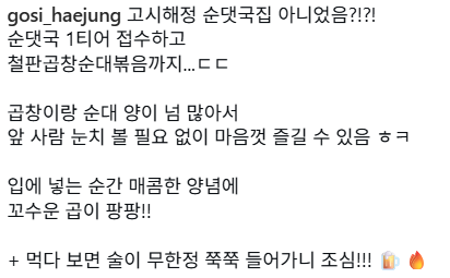고시해정 철판곱창순대볶음